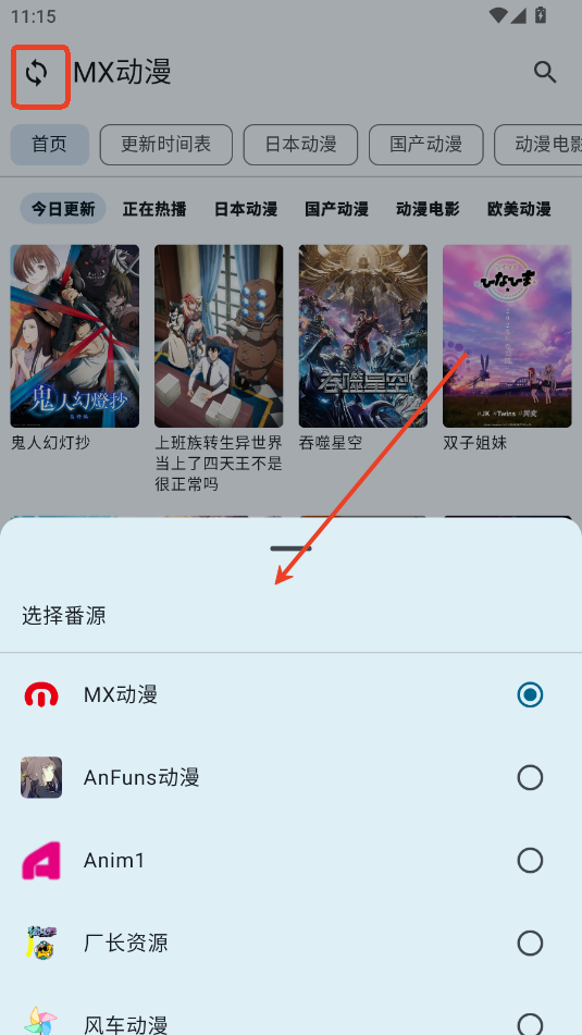 6.点击左上角刷新按钮可以切换源。
