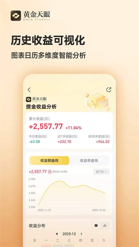 攒金日历,从年、月、日三个时间段维度让您的攒金可视化。