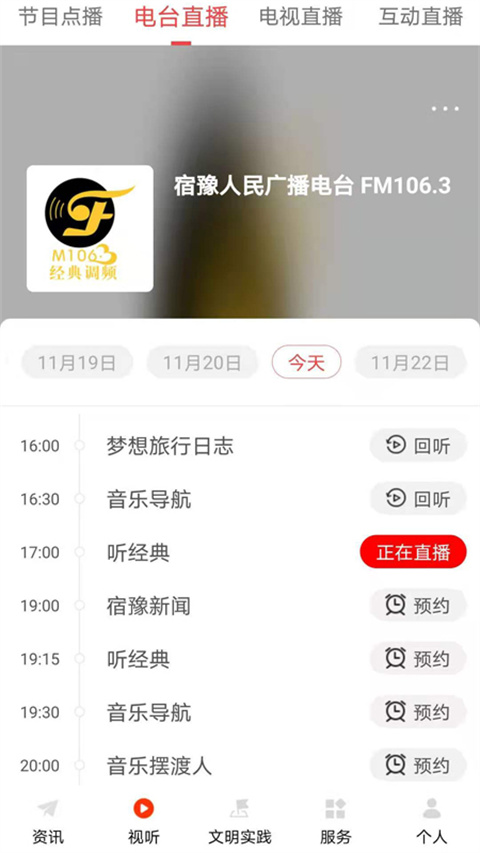 5、点击电台直播进入,实时查看节目播放的清单,预约收听。