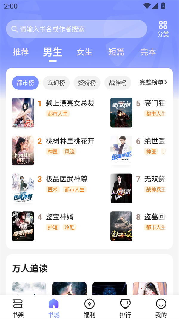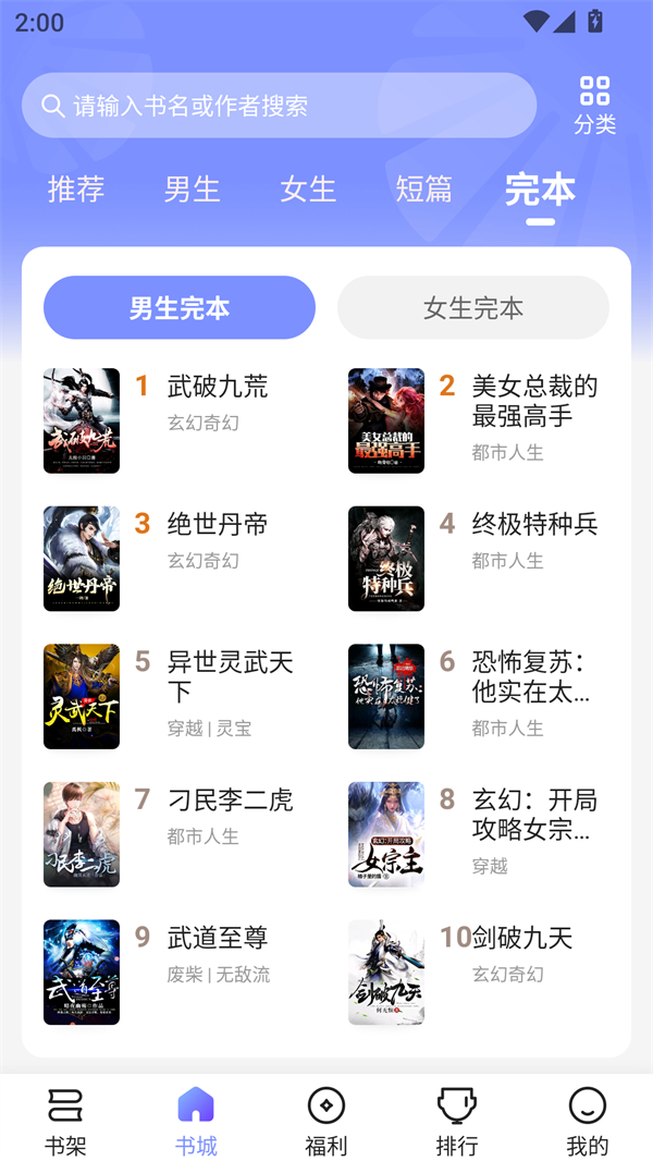 软件内的排版非常的清爽直观,并将书本都按照题材来分类,轻松就能找到有趣的书本题材;