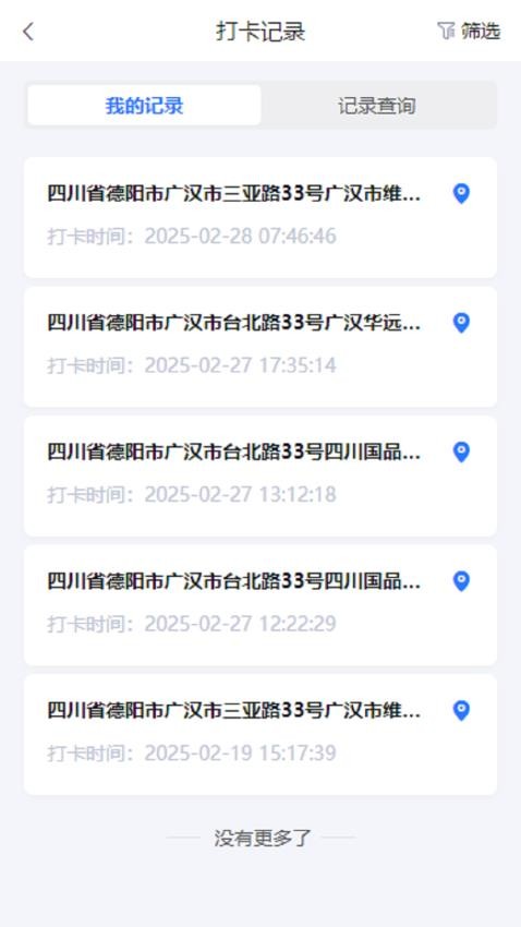 使用考勤打卡功能进行上下班考勤打卡操作,记录上下班的考勤数据。