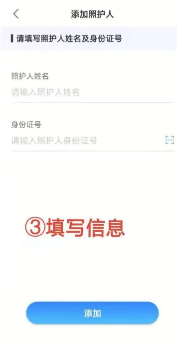 ①在照护人管理页面中,点击【添加】进行照护人绑定。