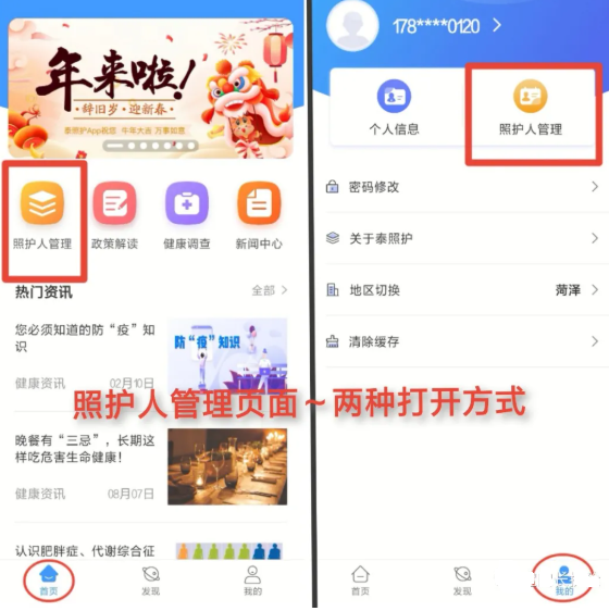 或者点击【我的】-【照护人管理】都可以进入照护人管理页面。