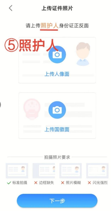 ⑤上传照护人身份证正反面
