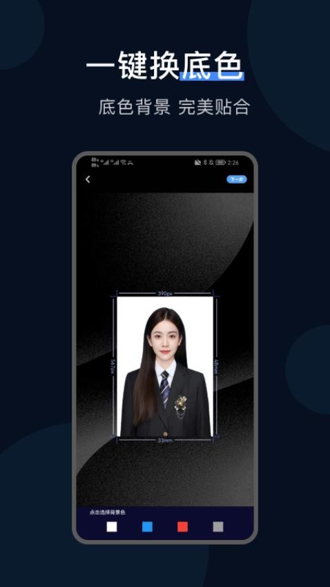 软件可以帮助用户一键更换证件照的底色背景并实现完美贴合。
