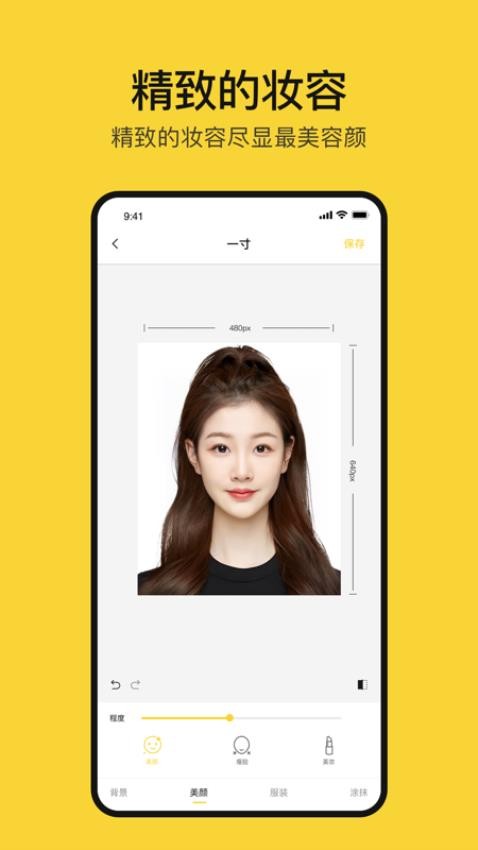 用户使用软件对证件照进行美颜处理时可以自由调节美颜程度。