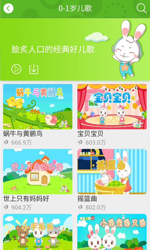 兔兔儿歌最新版,科学划分适龄儿歌,适合0~6岁小朋友使用!