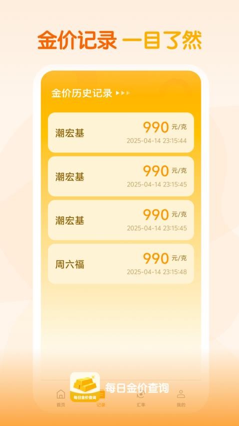 将用户的金价查询历史记录下来,便于用户查看历史金价记录详情。