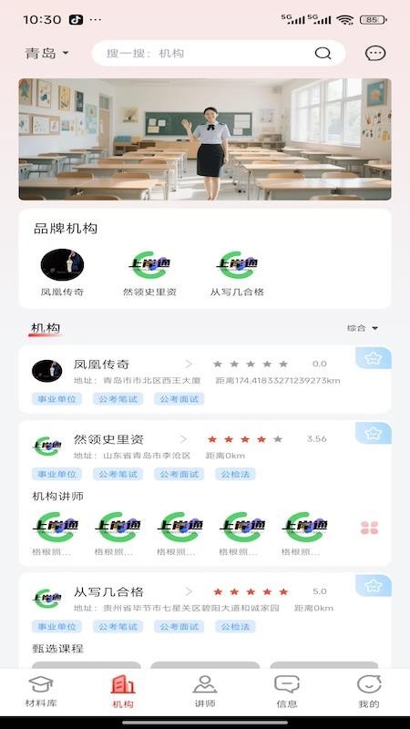 4、你还可以平台推送的培训机构信息,可以根据自己的需求选择合适的机构;