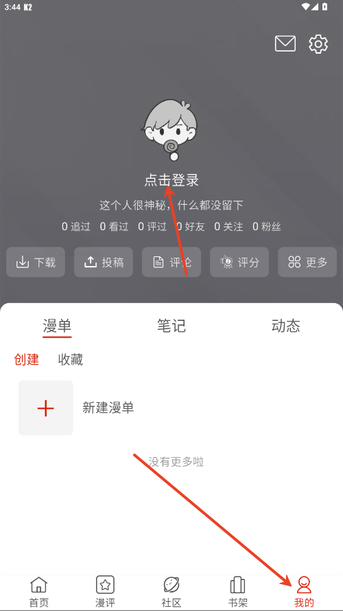 5.如果觉得漫画不够看或者卡顿可以点击【我的】在点击【齿轮】