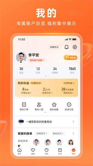您的保险小助手,方便您随时掌握保单权益、管理保单合同,为您提供24小时贴心服务。