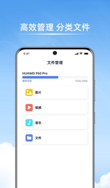 5、管理所有手机文件,并能分类查找和查看文件信息,还能实时了解储存空间。