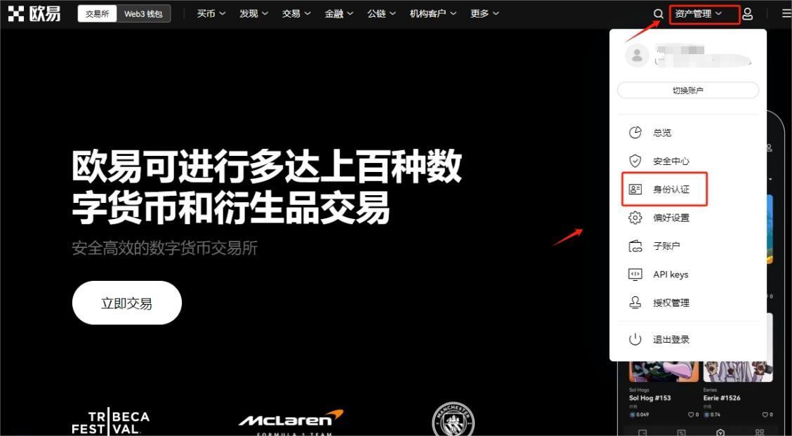 5.注册账号后需要进行身份认证才可进行交易,在首页找到“资产管理”――“身份认证”即可根据提示进行操作