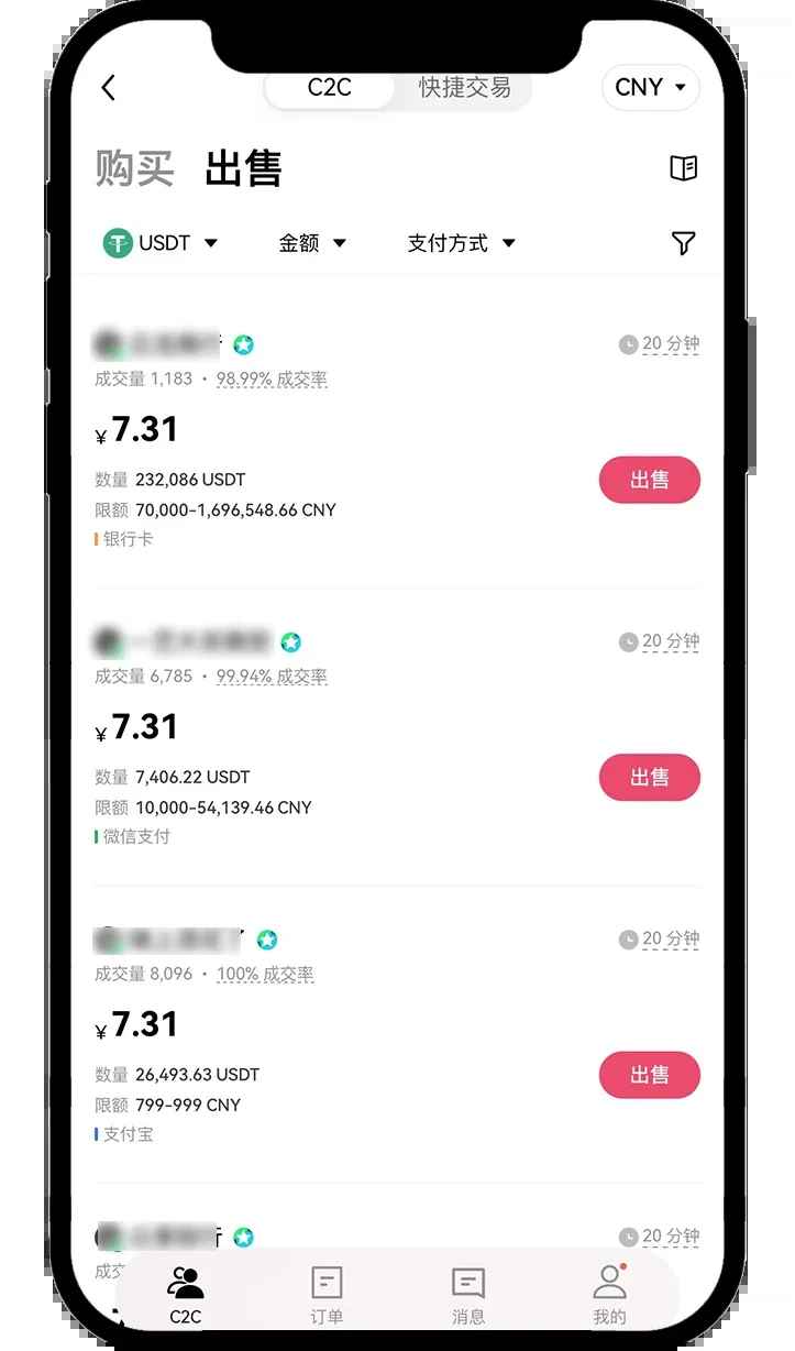 温馨提示:除【快捷买币】区进行卖币之外,您也可以选择【C2C买币】区进行交易―【出售】选择商家,以及合适的价格。如果交易金额≥10万元,也可在【筛选】里选择【大宗交易】。