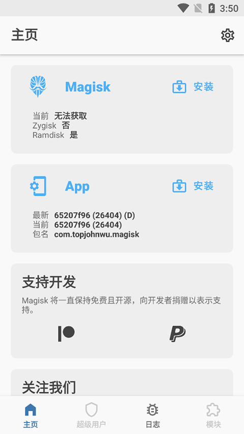 1、启动Magisk manager软件,如果存在当前Magisk的版本,则表示已经安装。