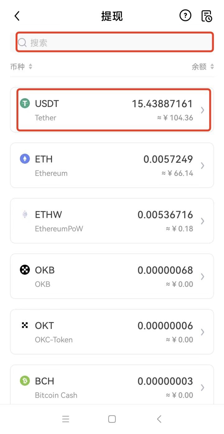 打开O易交易所App,点击【资产】―【提币】,会显示您目前可提币的币种,直接选择或者搜索USDT,点击【链上提币】。