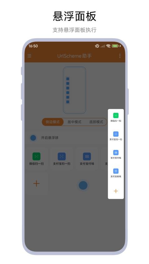 UrlScheme助手app是一款为用户提供多工具的便捷应用程序软件,软件中提供了多种常用的工具,包含了微信扫一扫、支付宝扫一扫、支付宝收钱等等,让你随心选择使用,对自己需要的工具可以快速搜索查找,轻松绑定显示,就可随心配置自己的桌面工具;而且用户也可以对相关的任务来实时处理,简化的处理流程可以帮助用户快速处理,极速处理相关的任务,轻松完成。此外,UrlScheme助手软件还为用户提供了悬浮面板的布局执行,多种悬浮球布局都可选择,让你高效便捷的操作使用,快捷执行任务,有需要的用户就赶紧来本站下载使用吧!