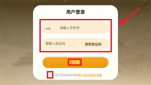 进入登录界面后,输入手机号,验证码,勾选我已经阅读并同意用户协议&隐私政策,点击登录即可
