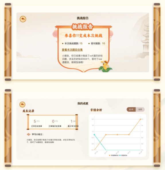 采用引导、沉浸、检验、挑战的四步科学学习法系统化构建知识体系。每一步都经过精心设计,确保输入、消化与输出的高效循环,并通过学习报告清晰追踪进度,让历史学习事半功倍。