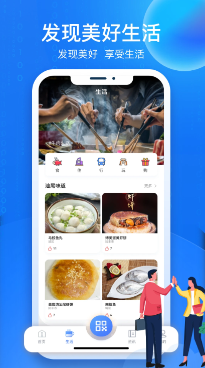 3、生活服务使用:点击底部 “生活” 栏目,根据需求选择 “食”“住”“行”“玩”“购” 等服务,获取汕尾的生活相关信息和服务。