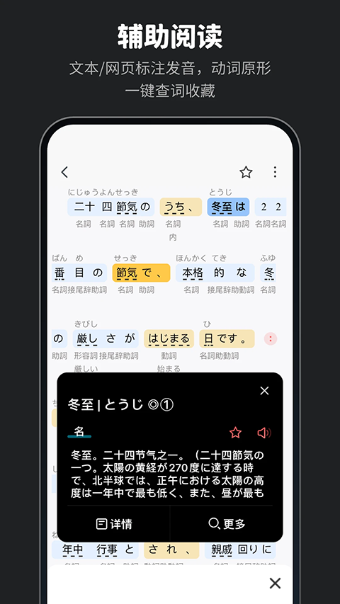 2. 单词详情页展示JLPT真题文本,记忆更深刻
