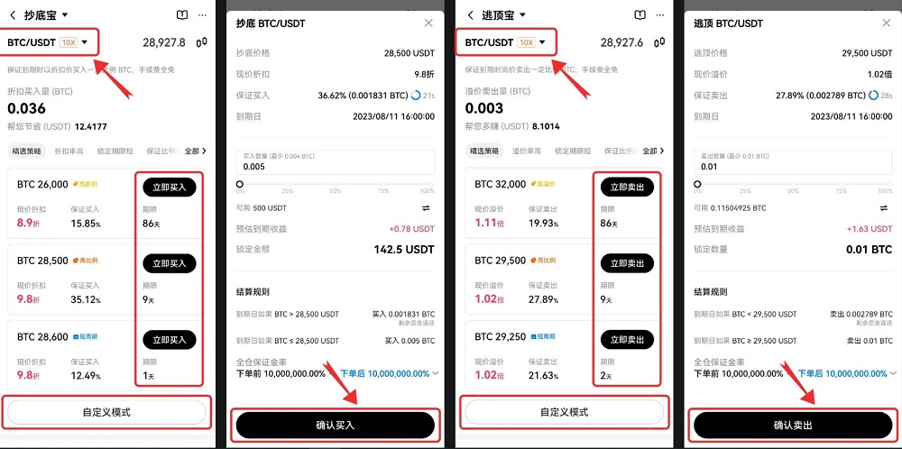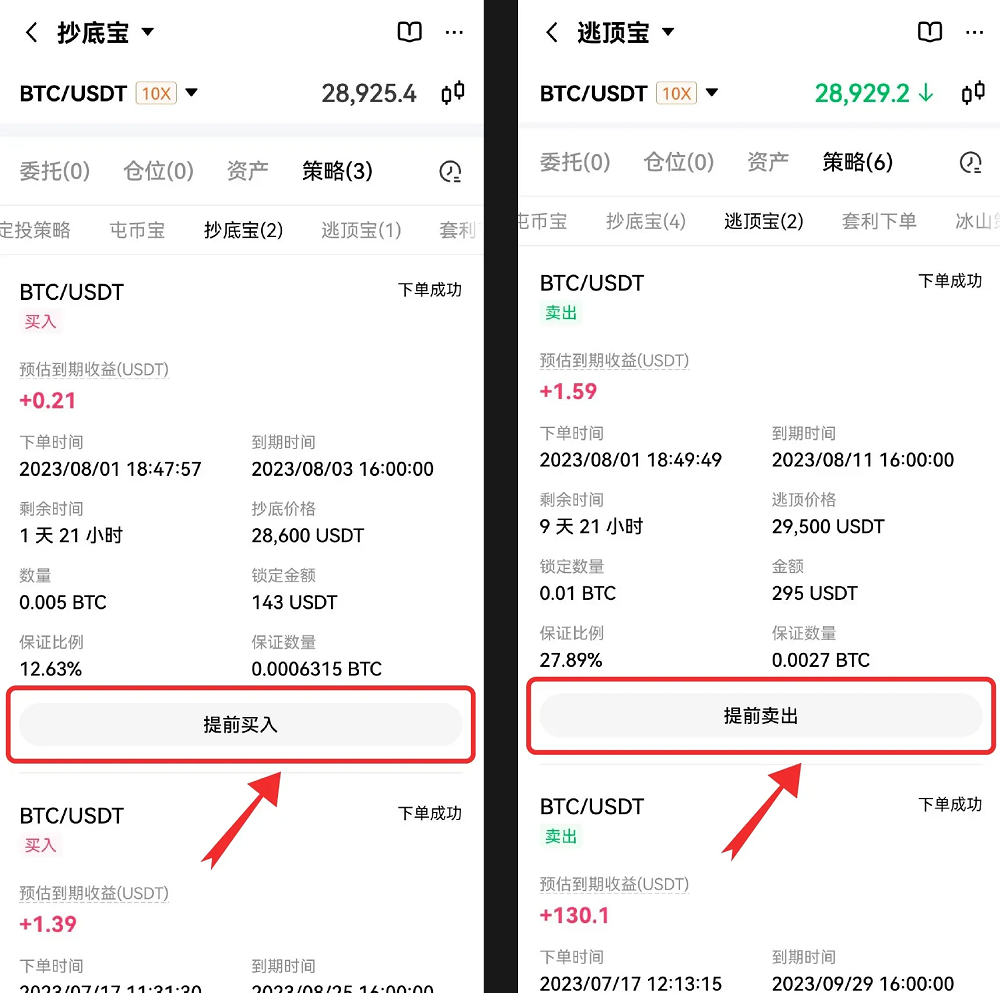 3.提前买入--提前卖出在抄底宝和逃顶宝交割前(下单后24小时,交割前24小时不可操作),允许用户以一定的报价提前完成锁定资金的立即买入或立即卖出(报价由实时行情和平仓费用决定)。