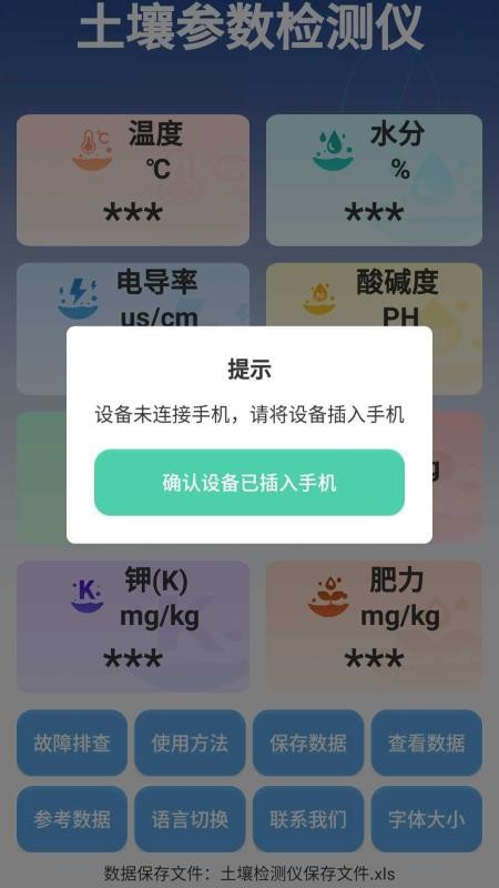 土壤速测仪APP这是一款专注于土壤环境状况极速测量和指标检测查看功能服务于一体的应用软件,在这里用户可以随时将测量设备进入其中,能够直接检测查看土壤的各项参数信息,各方面的指标数据信息一目了然知晓,数据信息的展示非常全面众多;而且该软件还拥有不错的数据结果自动保存,轻松将历史测量全部保存至本地数据库,用户回顾历史测量记录数据也会更方便;除此之外,在土壤速测仪官方版软件APP当中还支持用户自定义调节界面字体大小和语言设置,适用于多场景的使用需求;喜欢这款程序软件的用户朋友们可以来本站直接体验一番。