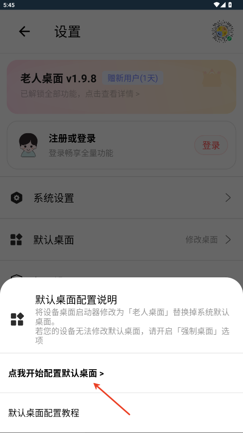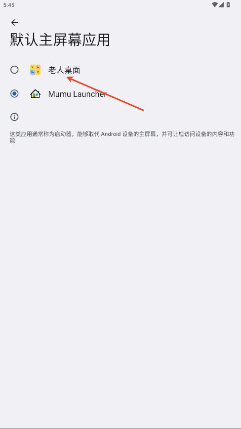 4.选择老人桌面为默认桌面即可。