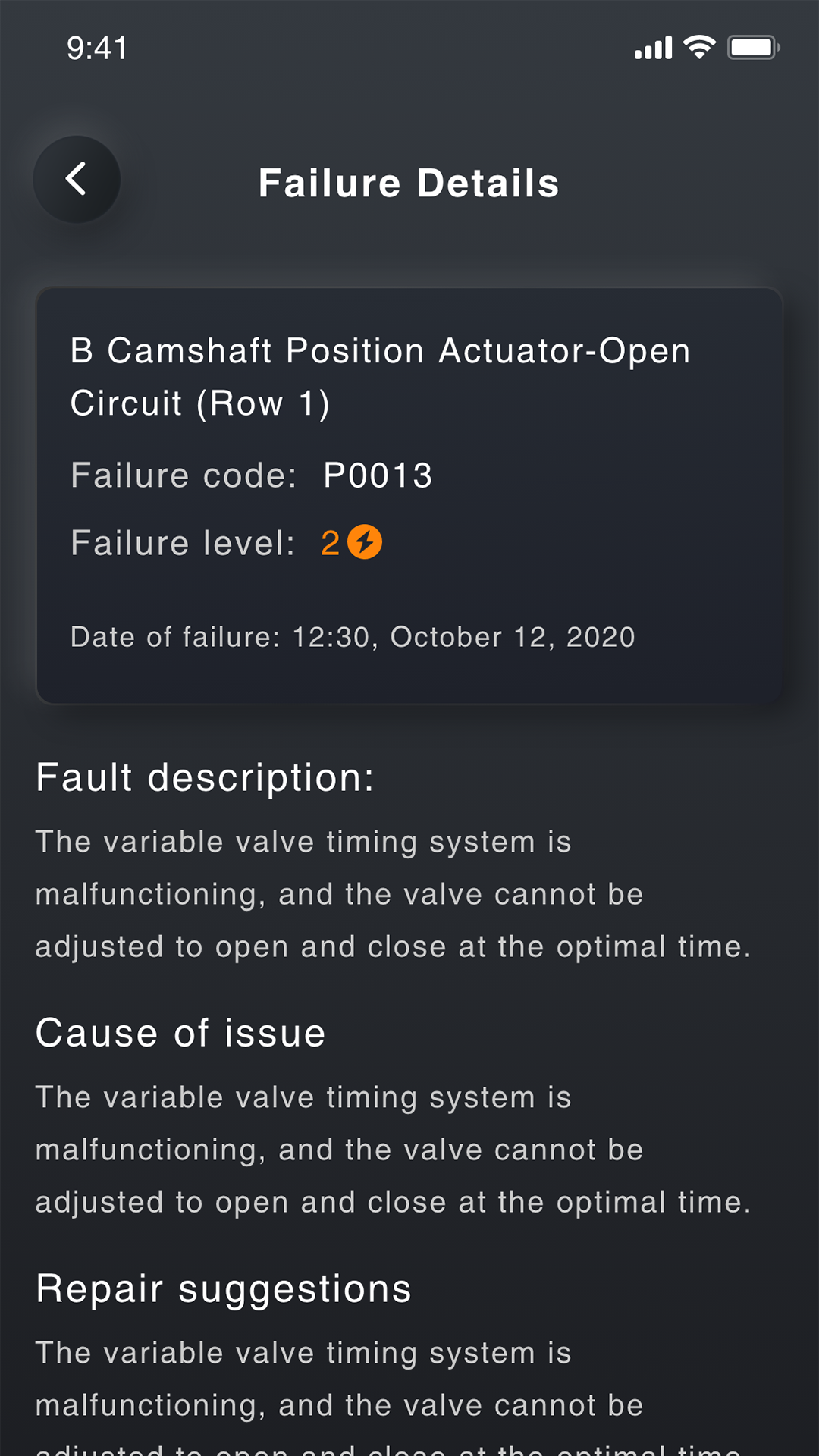车辆故障扫描:四个系统扫描提供详细的故障解释、维修建议和车辆故障时的帮助。
