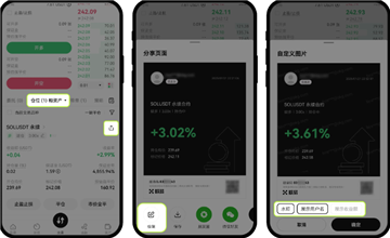 如果您已经持有仓位,点击【仓位和资产】,选择您要分享的订单。点击仓位右上角的分享页面图标,在分享页面,点击【编辑】图标,您可以编辑想要分享的页面,如是否添加水印,是否展示用户名或收益额,以防图片被盗用。
