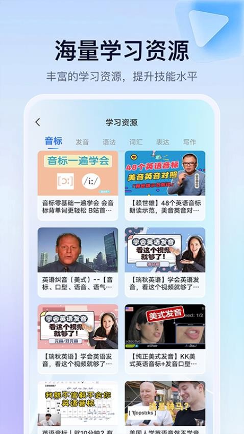 为用户提供了精品的学习资源,对听力、口语、阅读等都可以选择。