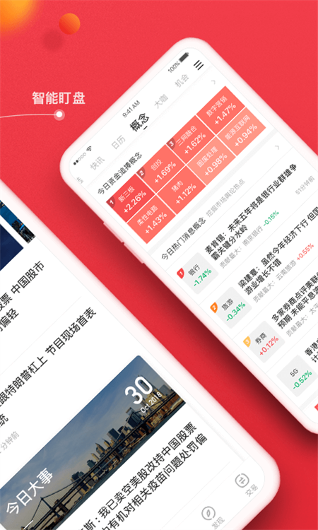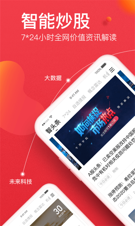 同时,我们也为用户提供多档精品栏目,包括7*24小时要闻、A股头条、机会情报、涨跌停揭秘、主力资金、龙虎榜等等,用户可以快速进行浏览。