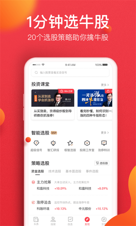 金融界app能够实时为用户推送金融相关的新闻资讯,帮助用户及时发现各种宝藏潜力股,让用户能够快速实现财富增值的效果。同时,该软件还拥有找投顾、快速问股等功能,让用户及时把握股市走势,获取到最稳的方案。此外,该软件更是实现了大数据甄选优质股票,帮助用户及时把握住交易机会。