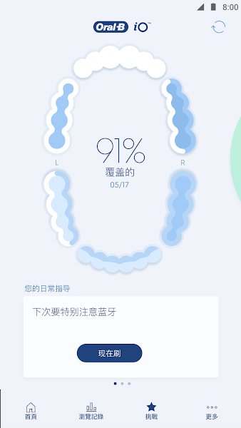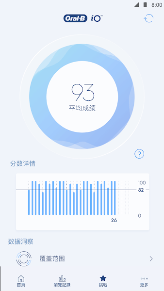 在每次刷牙指导课程后,上拉您的刷牙数据摘要,查看刷牙分数,快速了解您的刷牙情况。