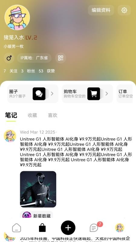 5、在个人中心可详细查阅信息资料,还能查看所有订单、笔记和喜欢的内容;