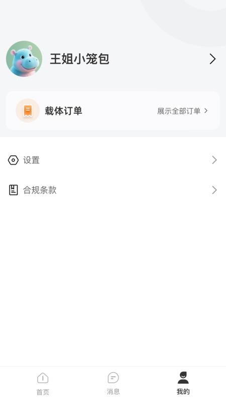4、进入到我的页面中找到“载体订单”功能查看订单信息;
