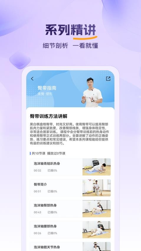 软件提供了专业的教学程序和指导课程,帮助用户学习正确的健身技巧,快速掌握健身知识。