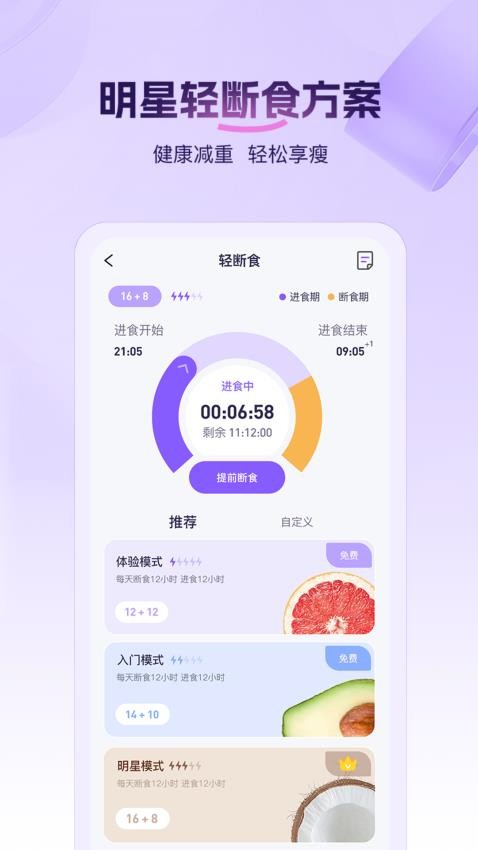 我们提供了多种轻断食方案,帮助你高效健身,同时还有喝水记录、体重记录,有数据,健身效果一目了然。