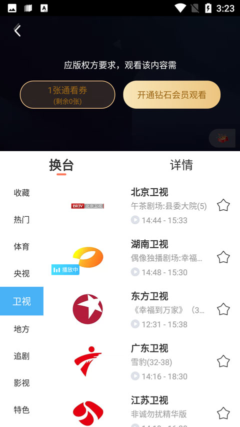 4、在卫视中,可以观看各个电视台的卫视,像北京卫视、湖南卫视、东方卫视等等