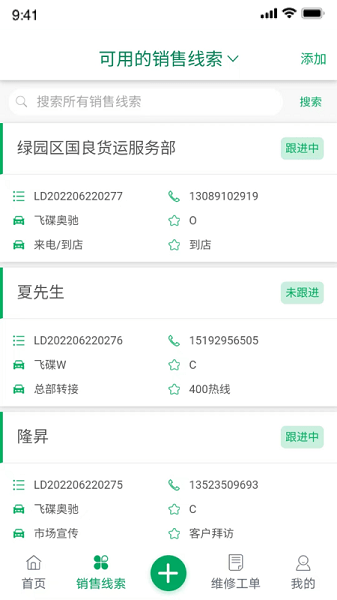 五征云服务app内置有首页工作台、销售线索、维修工单三大板块,为您提供一站式的效率办公服务,在手机上就能轻松接单,为客户提供优质的售后服务!