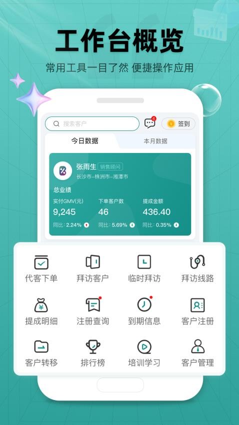 软件为用户提供了线上的工作台,对自己的销售数据可以统计分析。