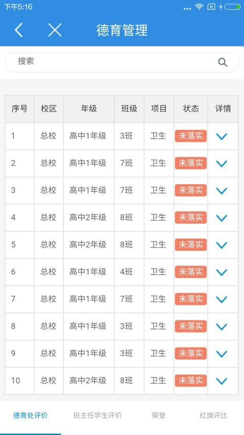 便捷的德育管理模式,并能通过搜索的方式快速查询项目,方便找到并立即落实;
