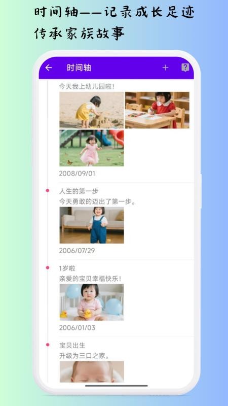 以时间轴的方式为你呈现家族故事信息,便于日常阅览,知道所有发生的事情;