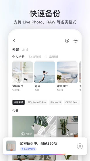 3、一键开启自动备份手机相册;