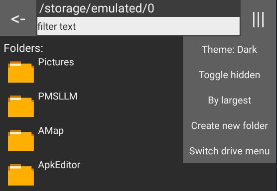 2.然后运行APP后,界面很简单,点击左上角菜单可以对文件进行排序。Create new folder是创建新文件夹。