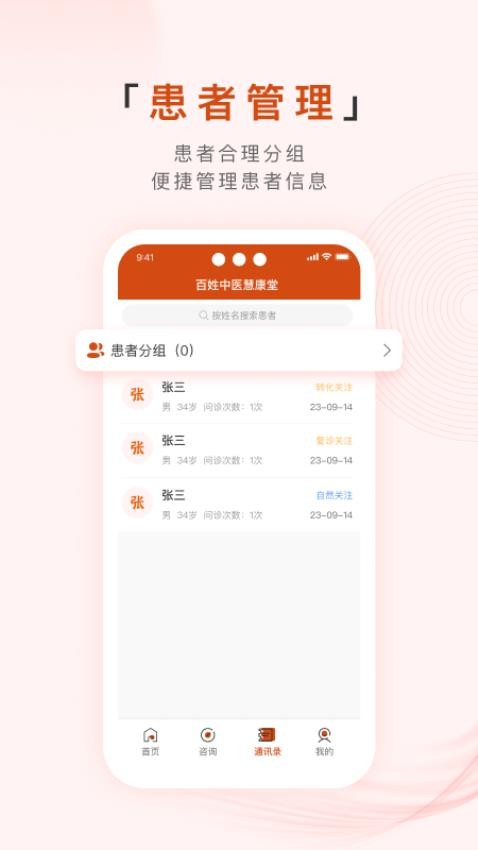 将患者信息集中管理,方便用户随时查找患者对患者进行随访问诊。