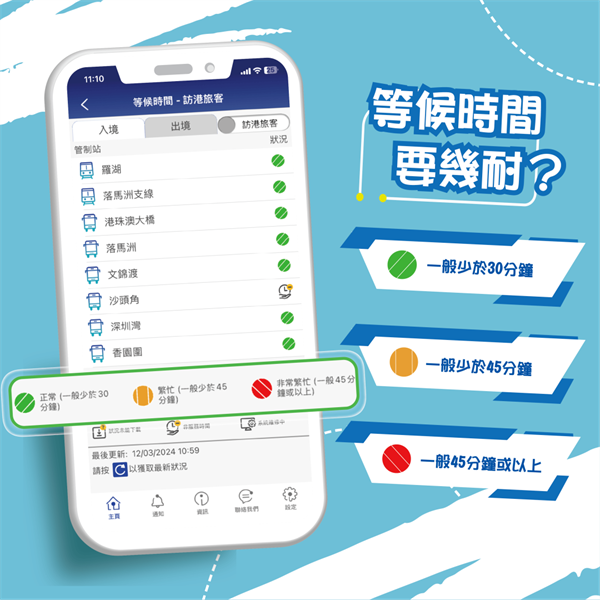 若不想花费额外时间排队过关,需下载入境处应用程序并善用“陆路边境管制站等候时间”功能,查看各陆路边境管制站的实时旅客排队过关情况,根据自己的行程和口岸最新状况选择最理想的管制站,以减少排队等候时间。