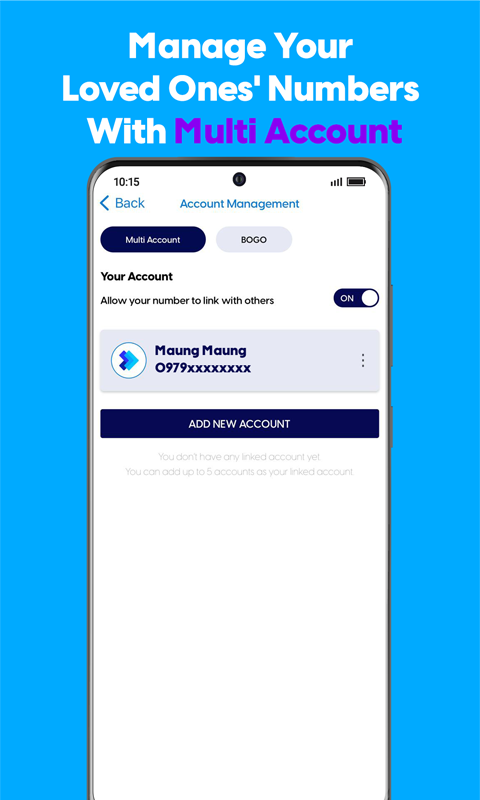 - 轻松快速地检查您的实用程序功能:检查您的主要余额和包余额、Kyo Thone、通过 QR 码轻松充值或您的首选支付选项(MPU、Visa、Master、Wave 和更多数字钱包)。
