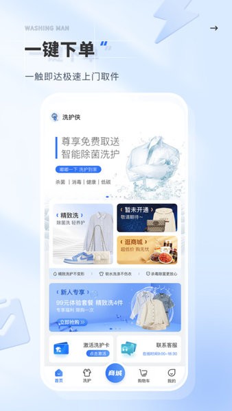 - 便捷:手机一键洗衣下单,顺丰京东随时取送!