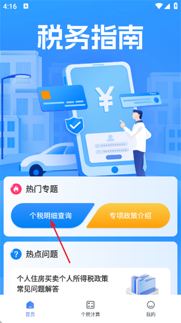 2、进入首页后,点击“个税明细查询”;